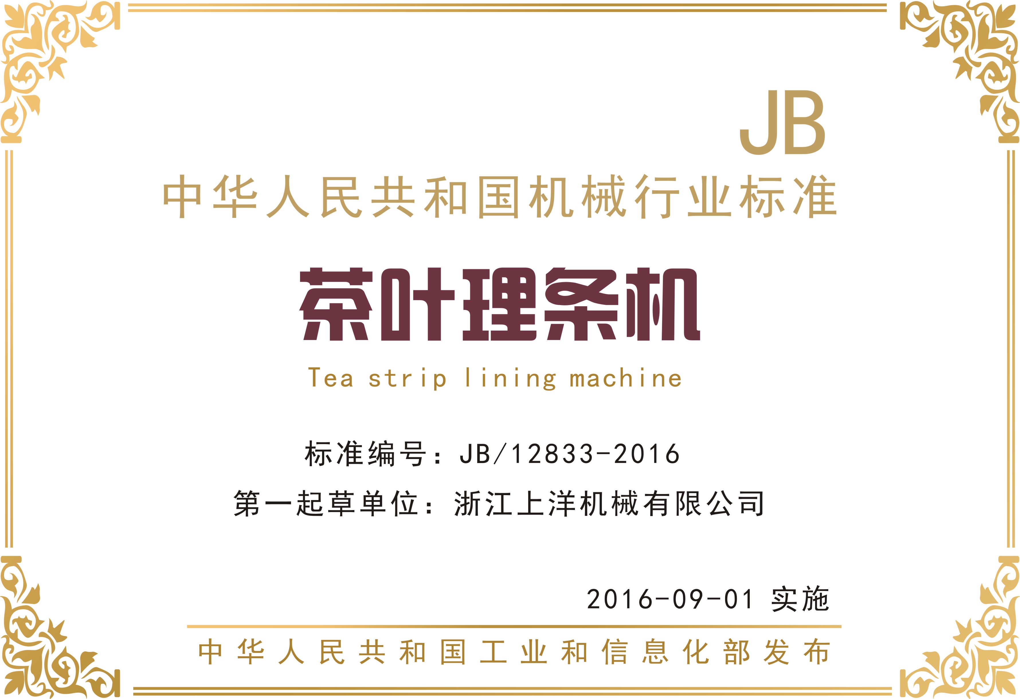 行業標準3、茶葉理條機-第一起草單位