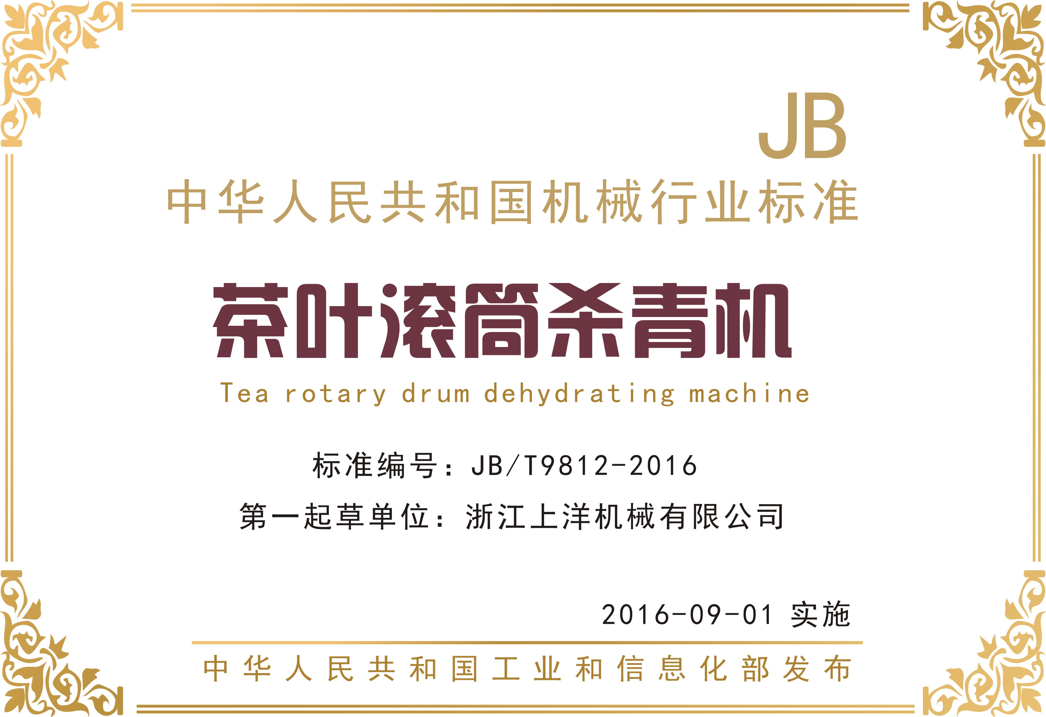 行業標準2、茶葉滾筒殺青機-第一起草單位